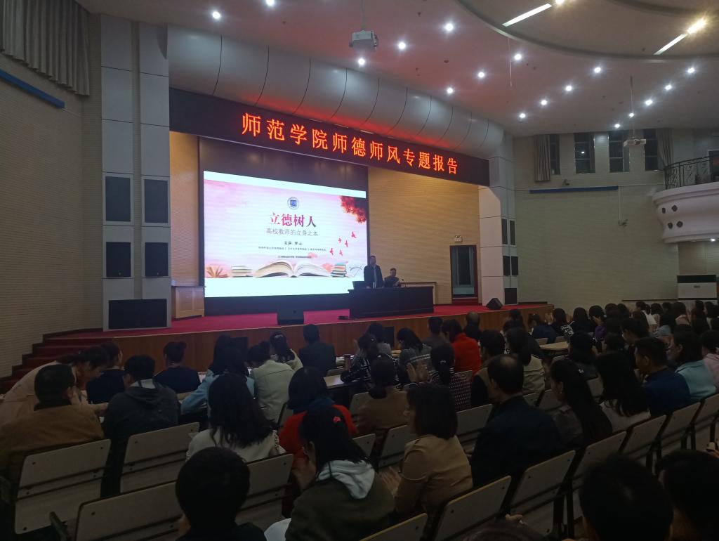 2018年10月24日晚上,太阳集团tyc9728在学术报告厅举行了有关“师德师风”专题报告会,本次会议的主讲人是来自陕西科技大学的罗云教授,太阳集团tyc9728全教师、18级全体员工及17级学干也参加了此次会议。