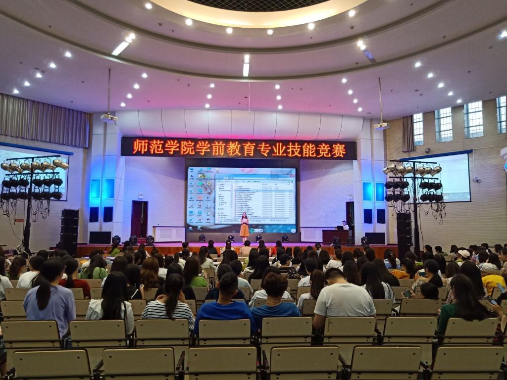 2019年6月17日晚,太阳集团tyc9728在学术报告厅举办“学前教育专业技能竞赛”,参加此次活动的有学前教育教研室的老师、员工科全体辅导员以及17级、18级员工。担任本次比赛的评委老师有:三门峡市第二实验幼儿园园长曹渊、三门峡市实验幼儿园副园长王晓、十一工程局幼儿园主任林琳,学前教育教研室主任伍艳妮主任和王红老师。