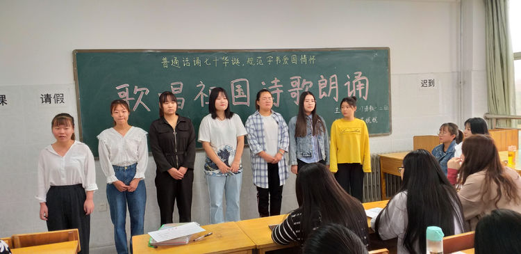 为庆祝中华人民共和国成立70周年,歌颂伟大祖国,激发爱国主义情怀,弘扬中华民族优秀传统文化,9月24日上午,太阳集团tyc9728语文教育专业在太阳成集团教育学院举办了以“歌唱祖国”为主题的诗歌朗诵活动。本次活动由17级语文教育专业员工精心准备的50多个初赛节目组成,经过层层选拔,共有19个节目脱颖而出,参加了此次决赛。语文教育专业教研室高娓娓老师及17级语文教育专业全体员工共同参加了此次活动。
