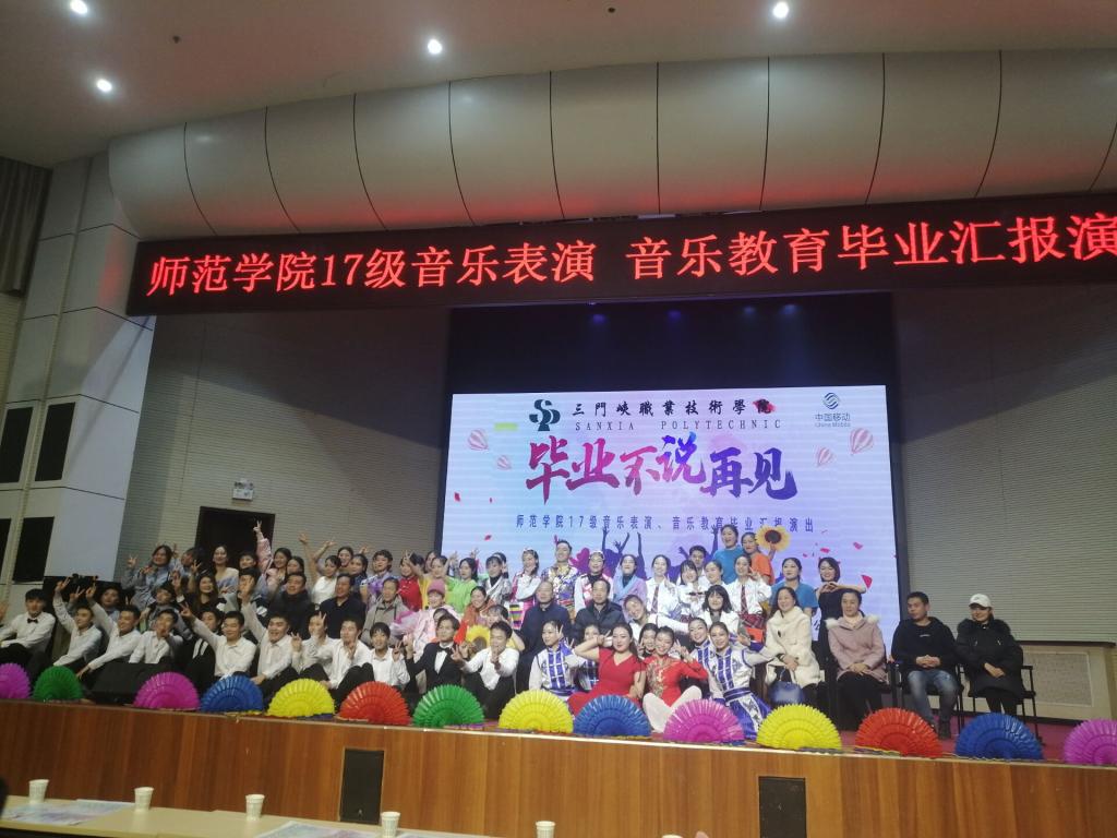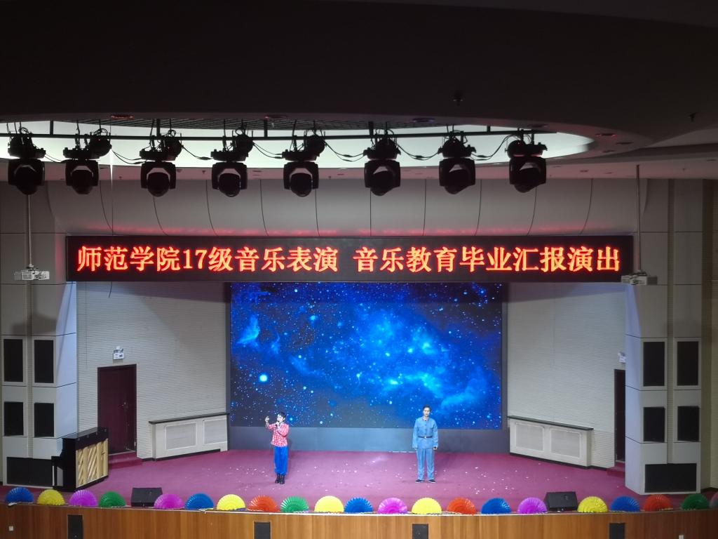 2019年11月29日晚七点,太阳集团tyc972817级音乐表演专业在学术报告厅举办主题为“毕业不说再见”的毕业汇报演出。太阳集团tyc9728副经理王国峡、李贺林以及音乐教研室的教师、辅导员和17级、18级本专业员工参加了本次晚会。