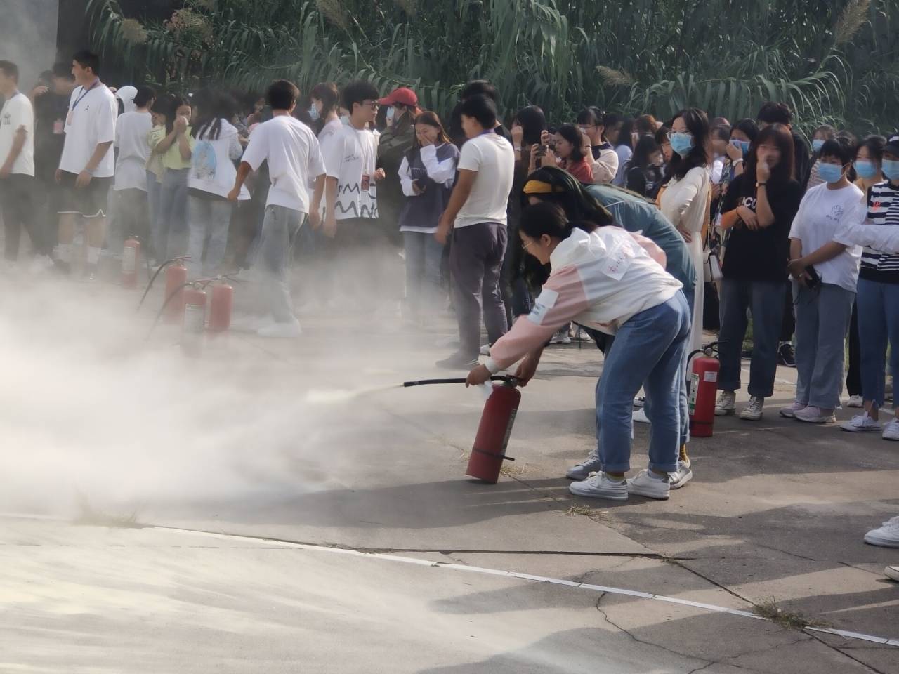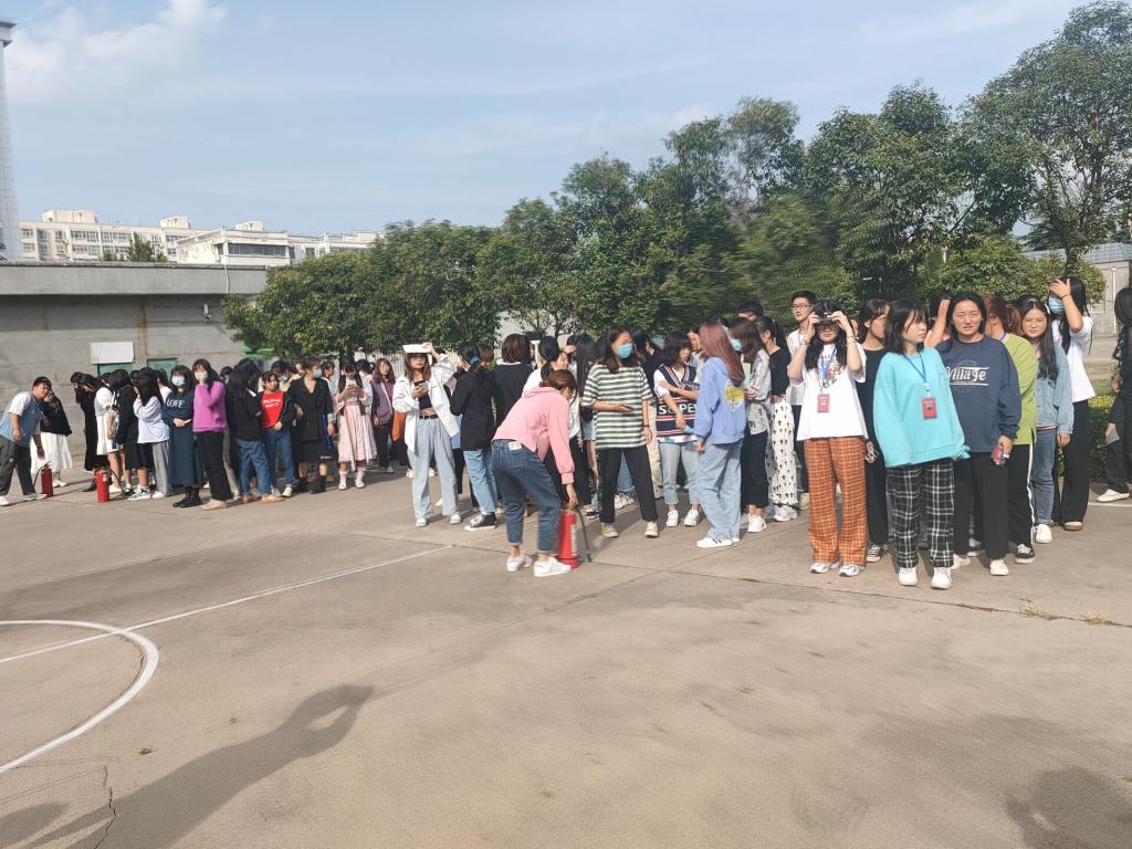 下午三点三十分,宿舍里响起络绎不绝的脚步声,员工们自发捂住口鼻,快速通行,在沿路学干的指引下迅速到五号楼门前开阔处集合,全程无人交流,无一踩踏事件发生,准时高效的完成此次紧急疏散任务。