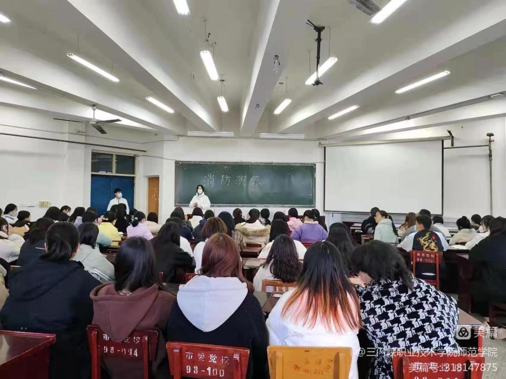 消防安全演练前,布置消防安全演练通道,要求同学们做好消防安全演练准备。一阵急促的警报声拉开了“消防逃生演练”活动的帷幕。