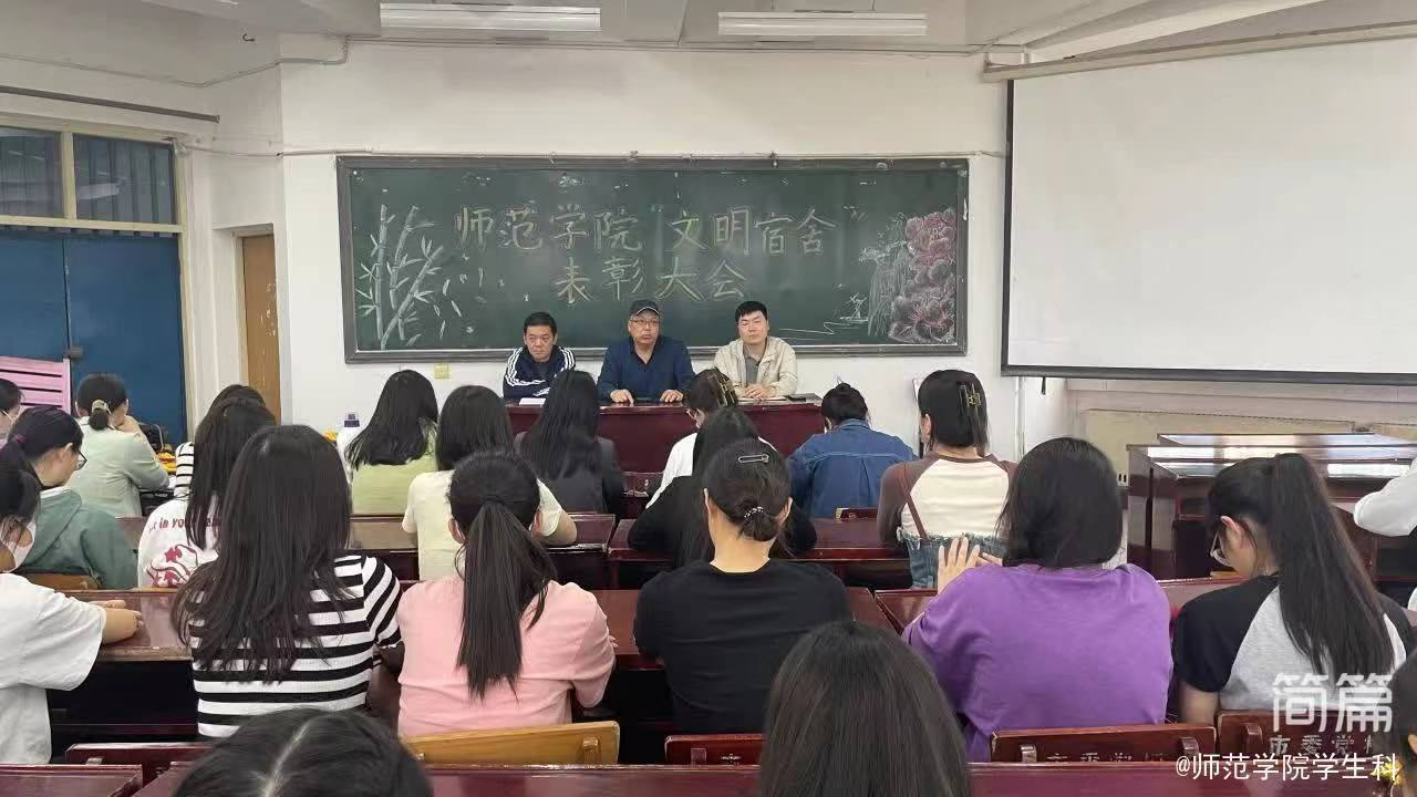 表彰大会由员工科长林博主持,员工科李俊凯宣布了获奖宿舍名单,总结文明宿舍的突出特点,并号召大家向这些宿舍学习,发挥自己的特长并结合专业争创文明宿舍,参会辅导员为员工颁发了文明宿舍流动红旗以及奖品。